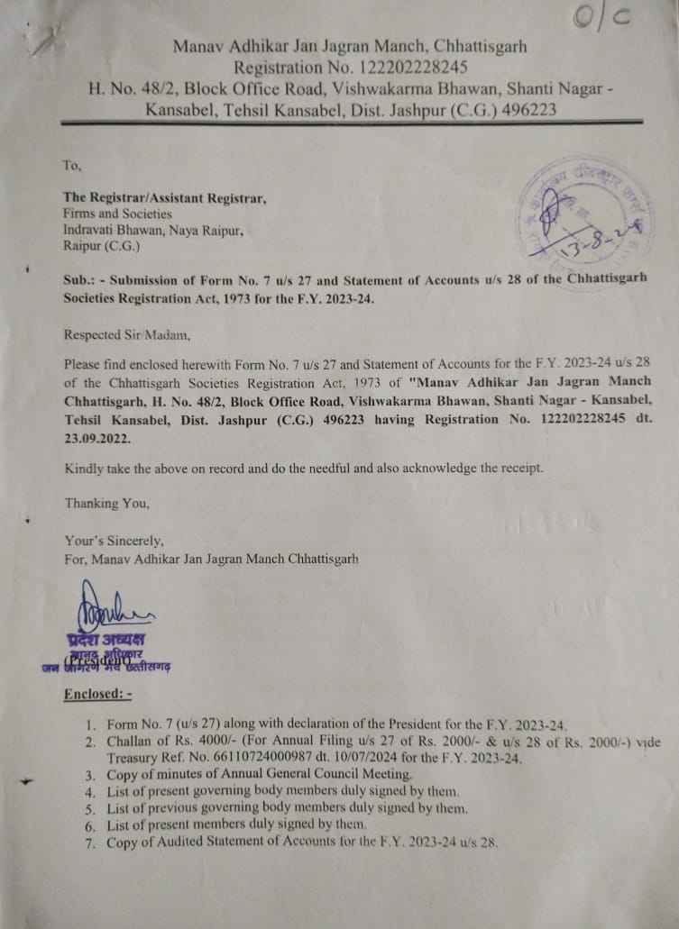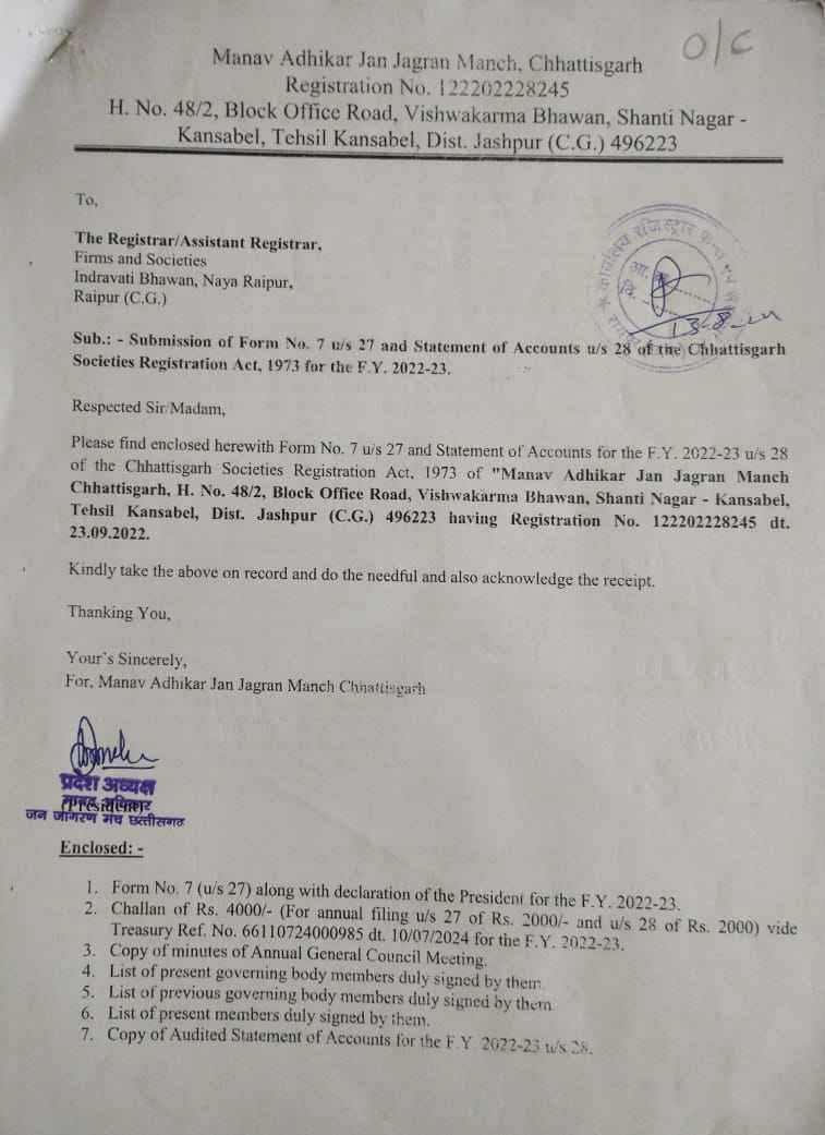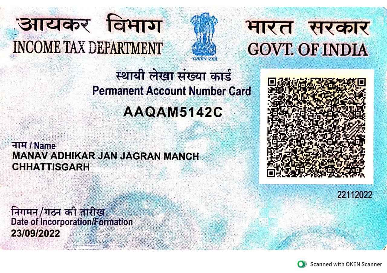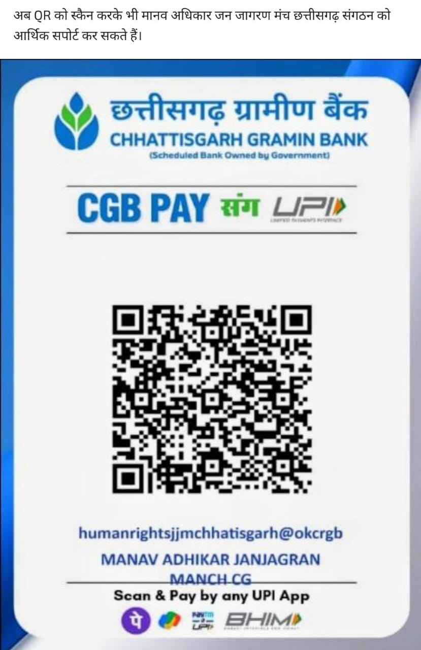 मानव अधिकार जन जागरण मंच छत्तीसगढ़ संगठन का बैंक एकाउंट QR