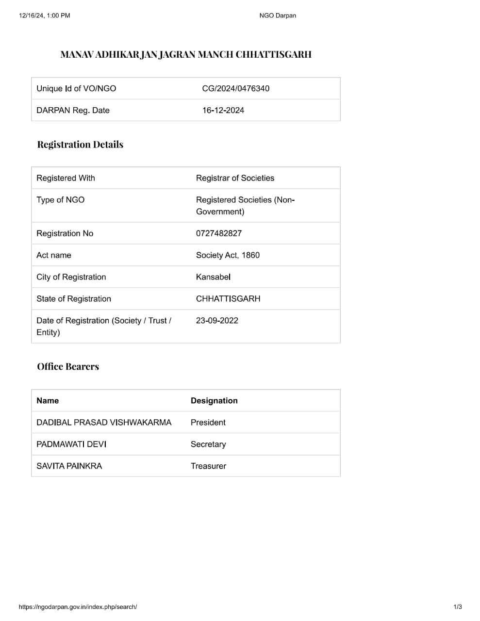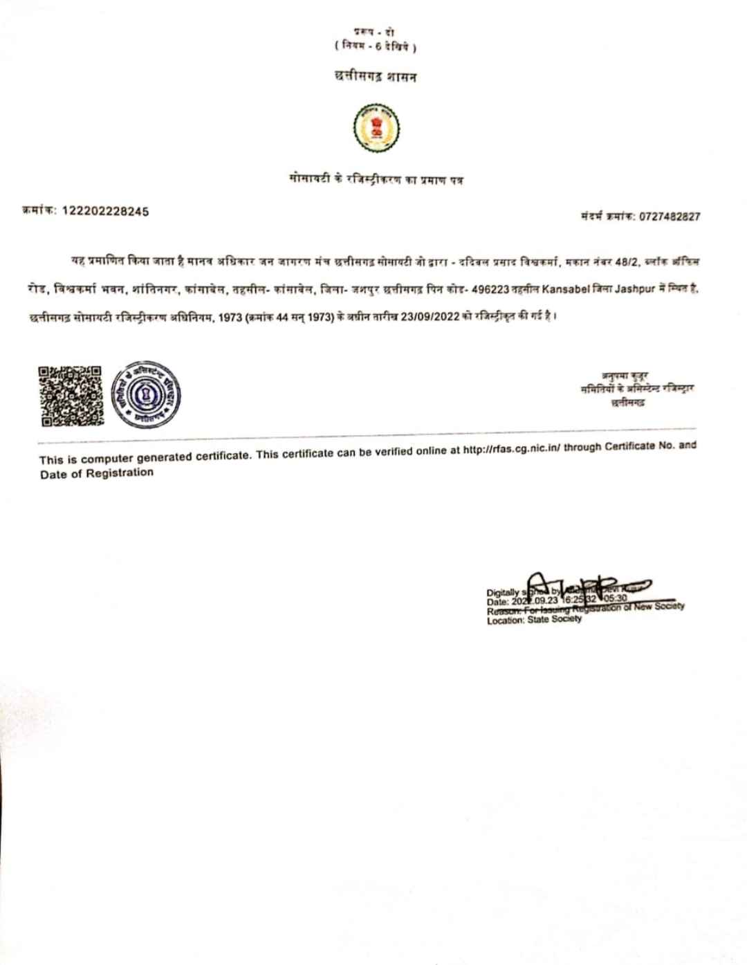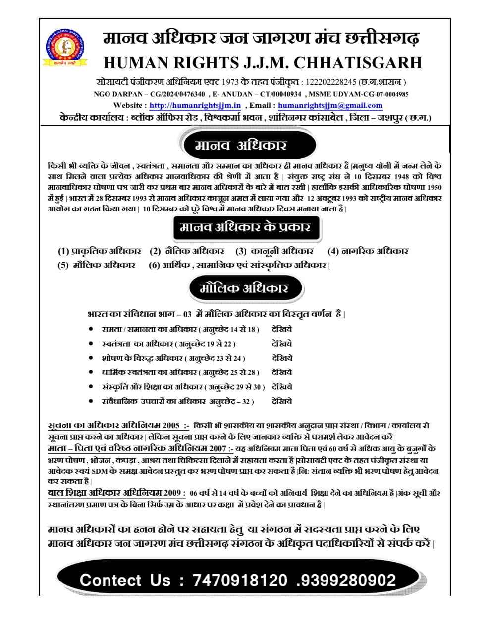 मानव अधिकार जन जागरण मंच छत्तीसगढ़ संगठन का बैंक एकाउंट QR