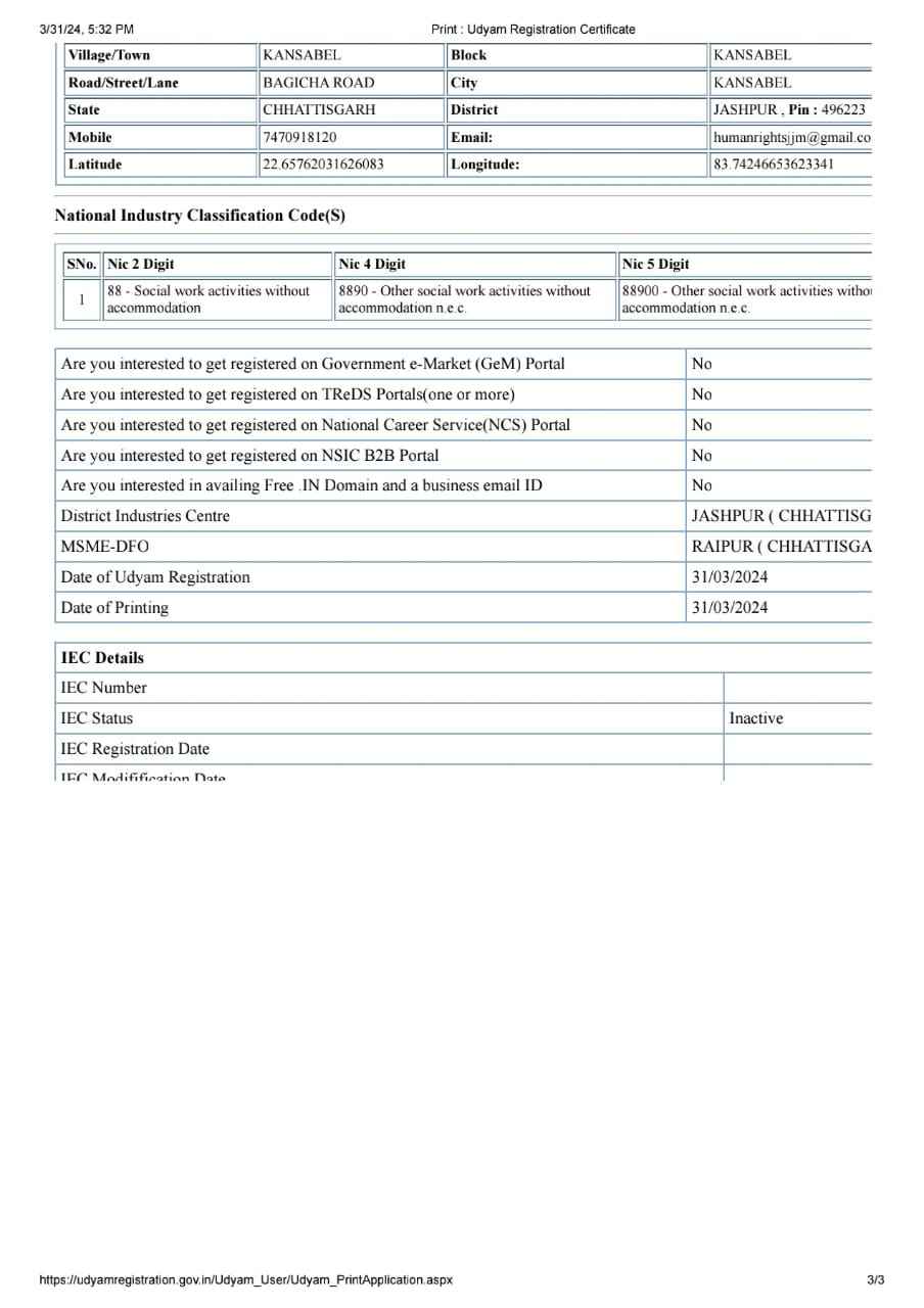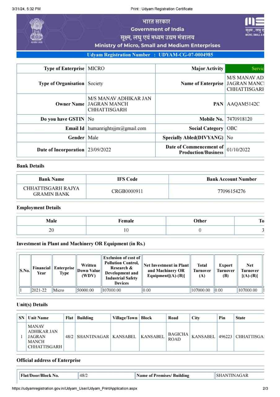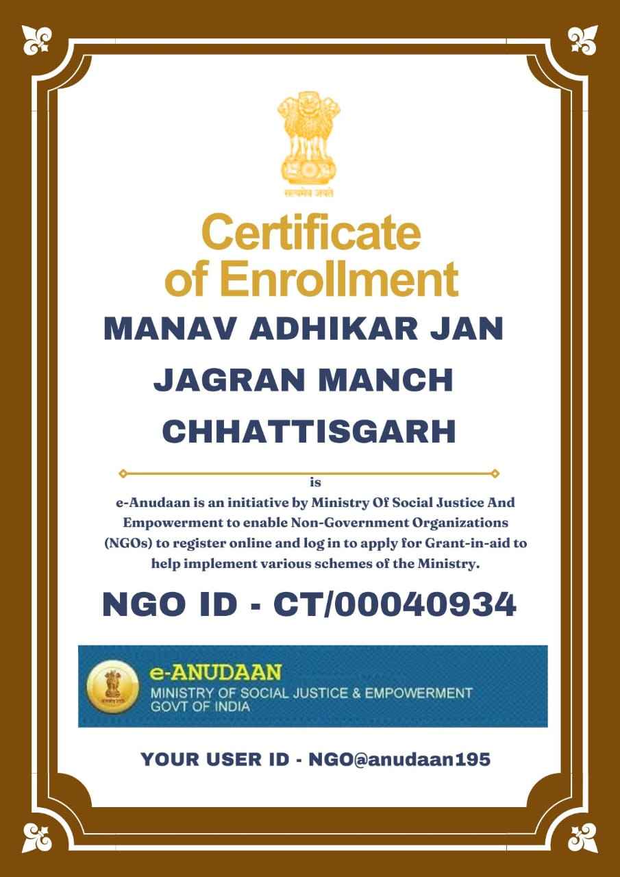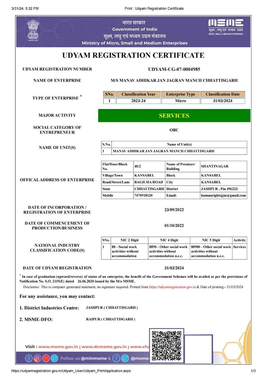 मानव अधिकार जन जागरण मंच छत्तीसगढ़ संगठन का बैंक एकाउंट QR
